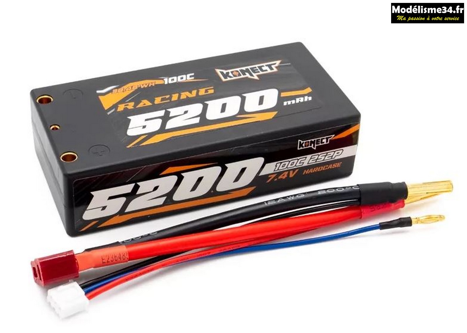Konect Lipo 5200mah 7.4V 100C 2S2P SHORTY : KN-LP.RT-2S5200-ST