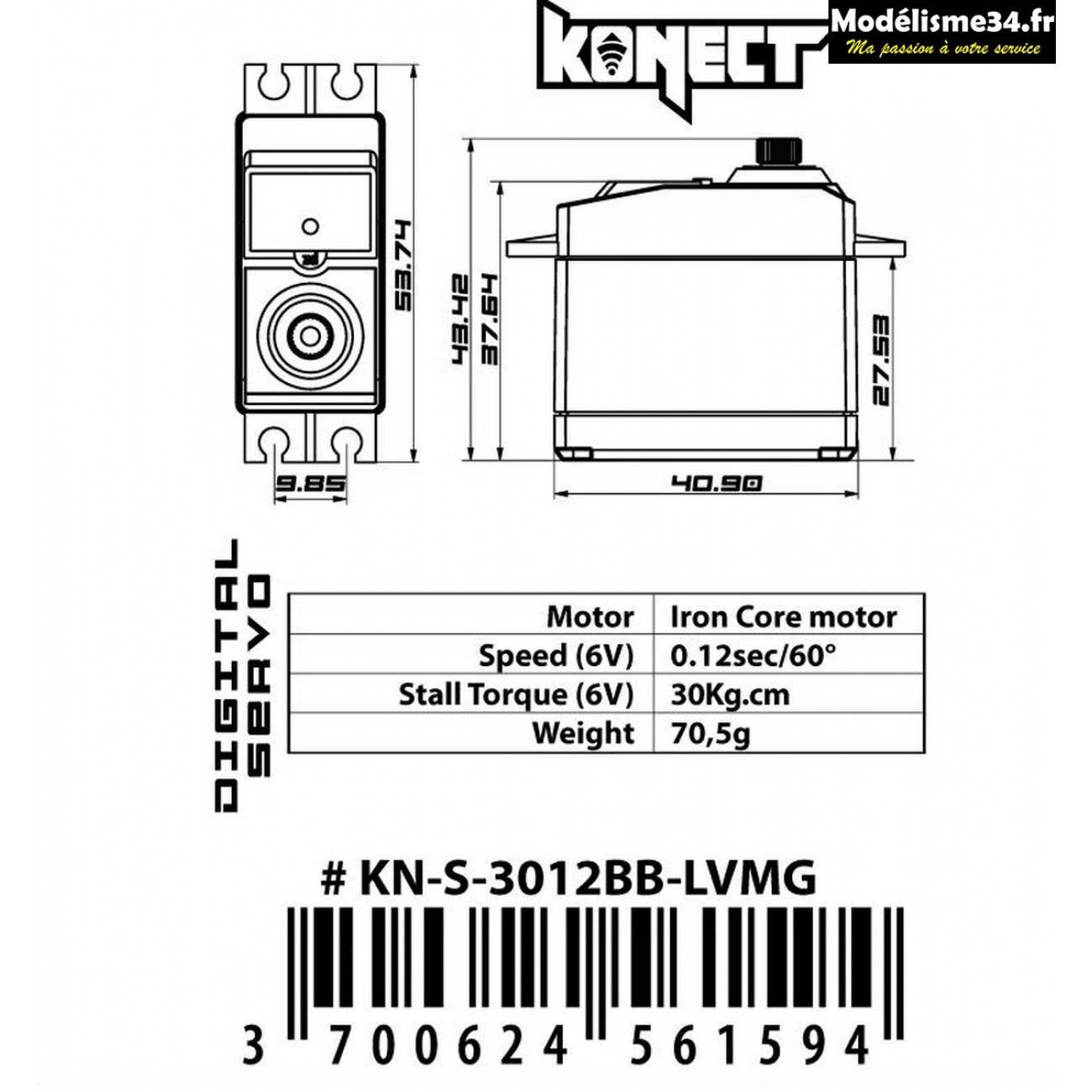 Servo Konect Digital 30kg-012s roulements/pignons métal : KN-S-3012BB-LVMG